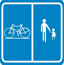 Début du chemin ou de la partie de la voie publique réservés à la circulation des piétons, cyclistes, cavaliers et conducteurs de speed pedelecs avec l’indication de la partie du chemin qui est affectée aux différentes catégories d’usagers.